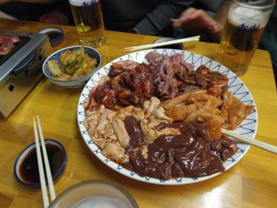 今日は、鵠沼賀来神社の仲間と、大船の大衆焼肉ジンギスカンで楽しく飲みました。約1時間ほど並んで待ち、順番が来た頃には喉も乾きビールがとても美味しかったです(^^♪ ジンギスカン、ホルモン、タン塩、レバー、ミノ、ハラミ、ハツなどを注文しましたが、どれも美味しくお酒も進み、会話も盛り上がりました(^^♪