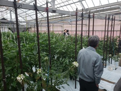 また、技術センター内の研究ハウス内のきゅうり、ピーマンの栽培状況も見学しながら説明を受けましたが、農作物にも猛暑の影響があるみたいで、人間と同じに快適な環境をつくることも効果があるとのことで驚きました。データの裏付けにより徹底された管理が、儲かる農業につながることが確認できました。