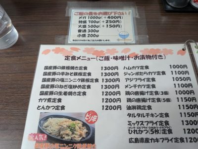 山北町立の温泉「ぶなの湯」をよく利用していますが、そこに行く途中にドライブイン「みやこ食堂」があります。とても賑わっている食堂です。今回は、国産豚の辛みそ鉄板定食(1,300円)をいただきましたが、本当に美味しかったです(^^♪