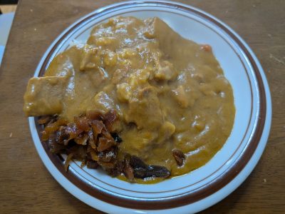 今日のお昼は、新潟のバスセンターのカレーです。といってもレトルトですが(^-^; 前に一度出張に行ったときに食べたことを思い出します。