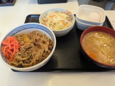 今日のお昼は久しぶりに「吉野家」で、牛丼(つゆだく、ご飯少な目)、サラダ、豚汁をいただきました。たまに食べると本当に美味しい(^^♪