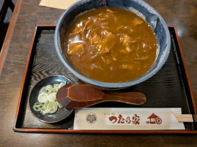 今日は父が検査入院から退院したので、茅ヶ崎の実家まで送って藤沢へ。お昼はエスタ地下の「つたの家」で、カレー蕎麦(1,200円)をいただきました(^^♪